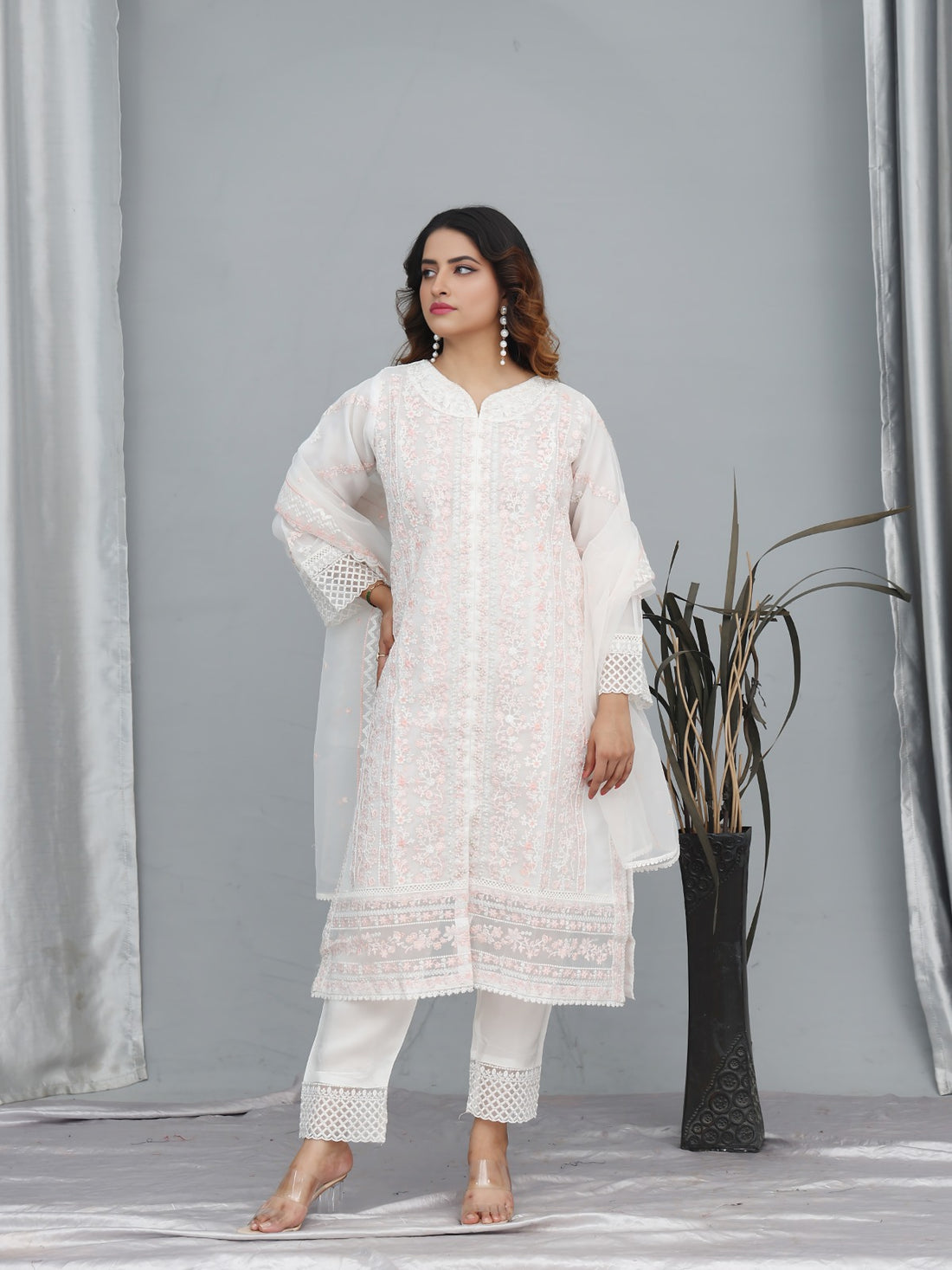 Elevate your festive and formal look with this exquisite 3-piece white ensemble from Style Up....