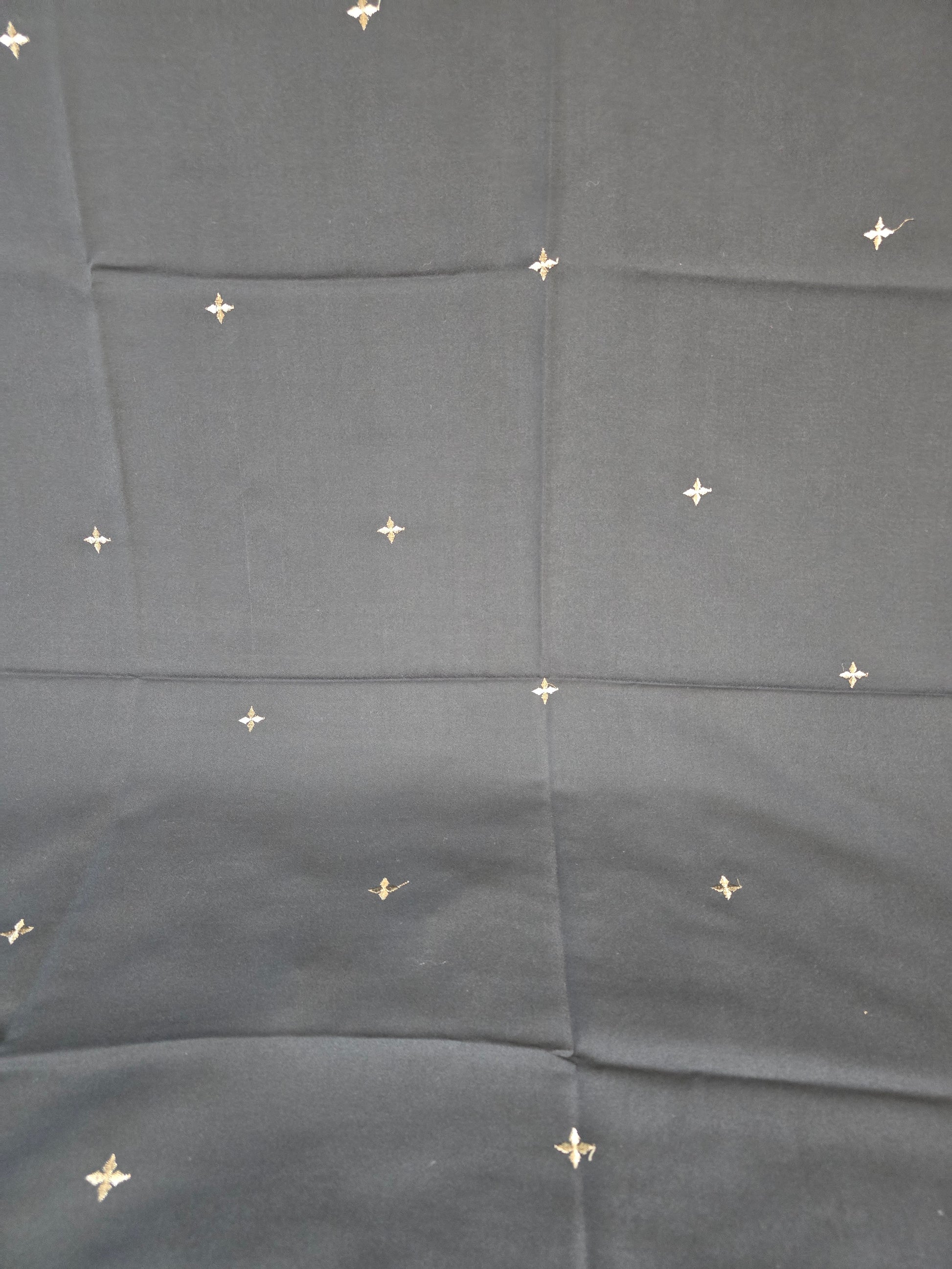 The rich base is beautifully adorned with delicate embroidery and finished with a graceful border, giving it a timeless and sophisticated appeal.