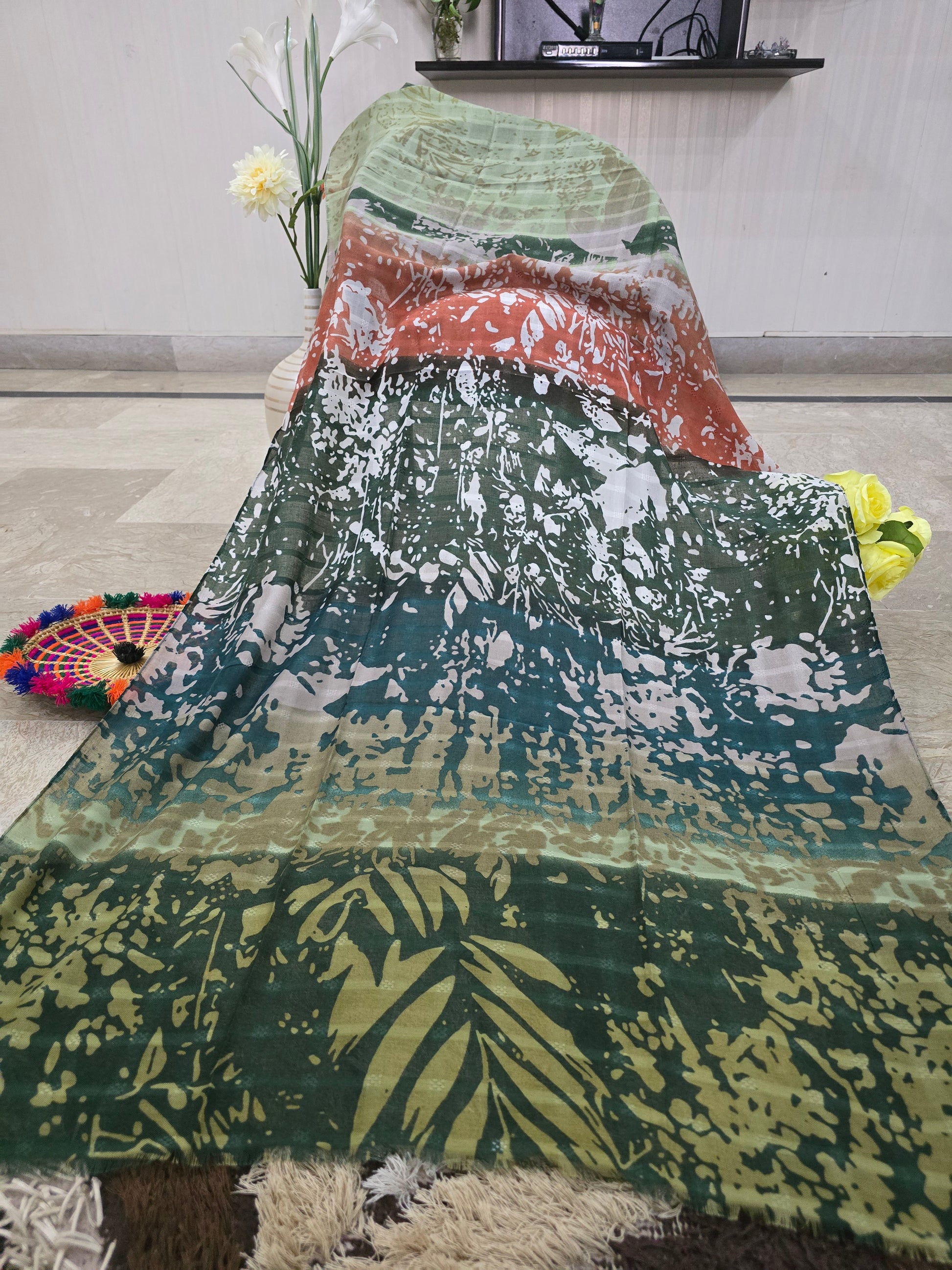 Crafted from a premium pashmina blend, this scarf features a beautifully detailed woven design in rich, multi-coloured motifs. Its bigger size allows for easy draping and versatile styling — perfect for both casual and formal occasions. The fabric is lightweight yet warm, making it ideal for all seasons, offering a graceful touch whether worn during breezy evenings or cool winter days.