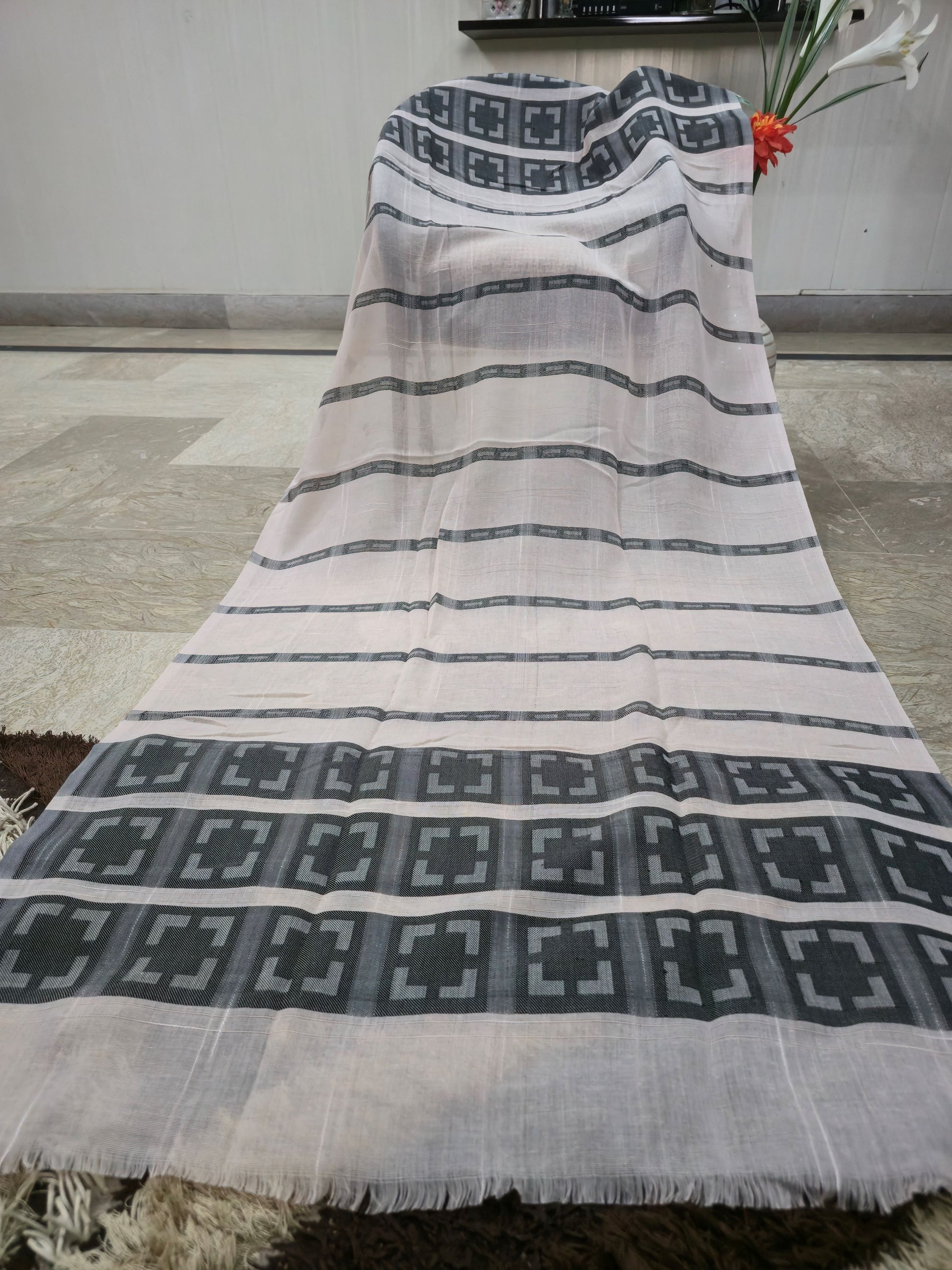 Crafted from a premium Fabric blend, this scarf features a beautifully detailed woven design in rich, multi-coloured motifs. Its bigger size allows for easy draping and versatile styling — perfect for both casual and formal occasions. The fabric is lightweight yet warm, making it ideal for all seasons, offering a graceful touch whether worn during breezy evenings or cool winter days.
