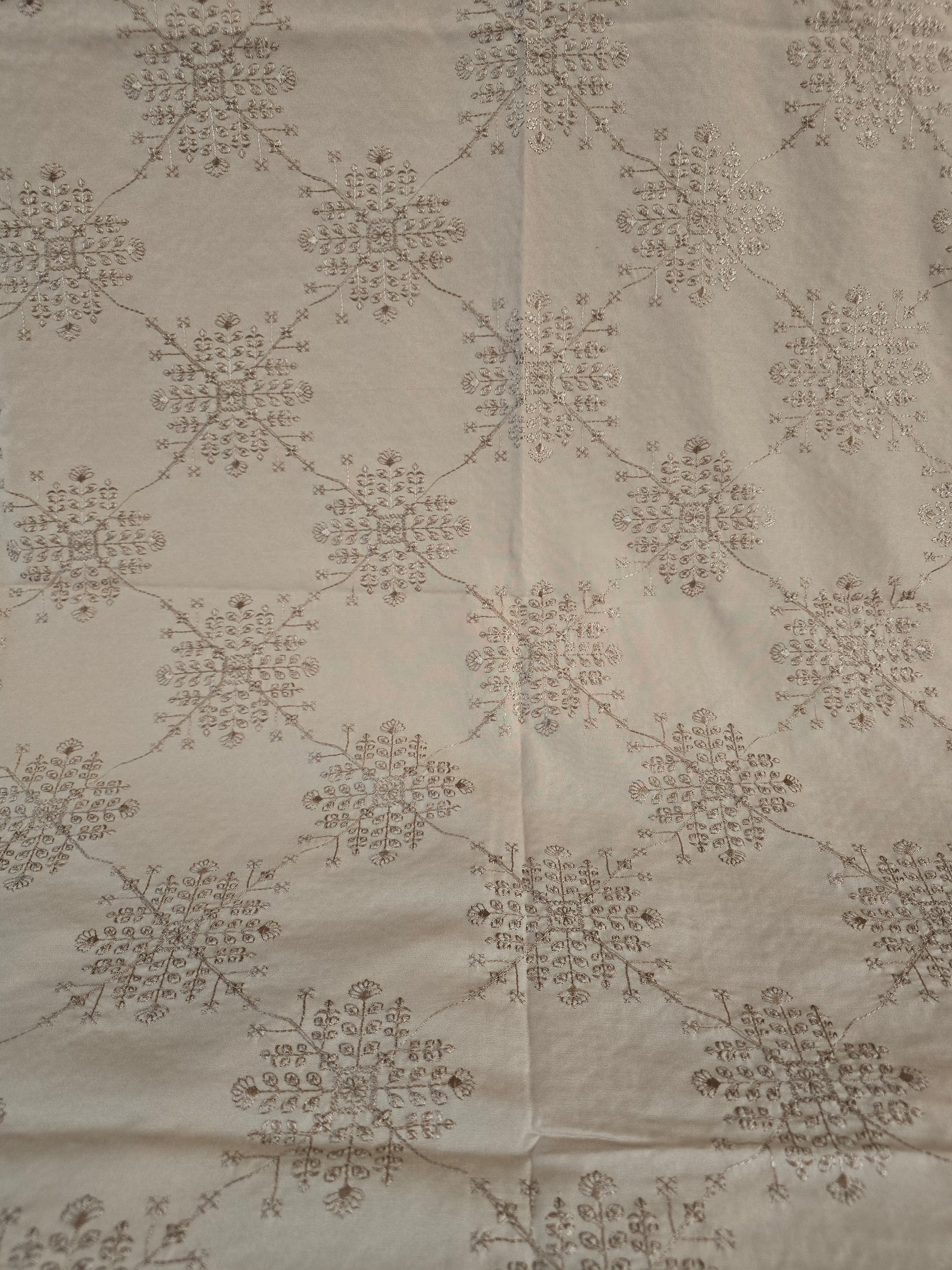 The rich base is beautifully adorned with delicate embroidery and finished with a graceful border, giving it a timeless and sophisticated appeal.