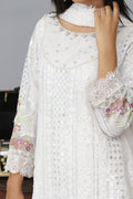 The look is completed with a fully embroidered chiffon dupatta and matching plain trouser, making it a perfect choice for elegant occasions and celebrations.