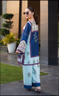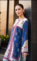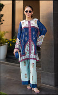 A captivating co-ord set in deep sapphire and ivory, featuring intricate botanical and symmetrical prints. The fluid silhouette and detailed borders exude timeless elegance, making it the perfect choice for effortless summer sophistication.
