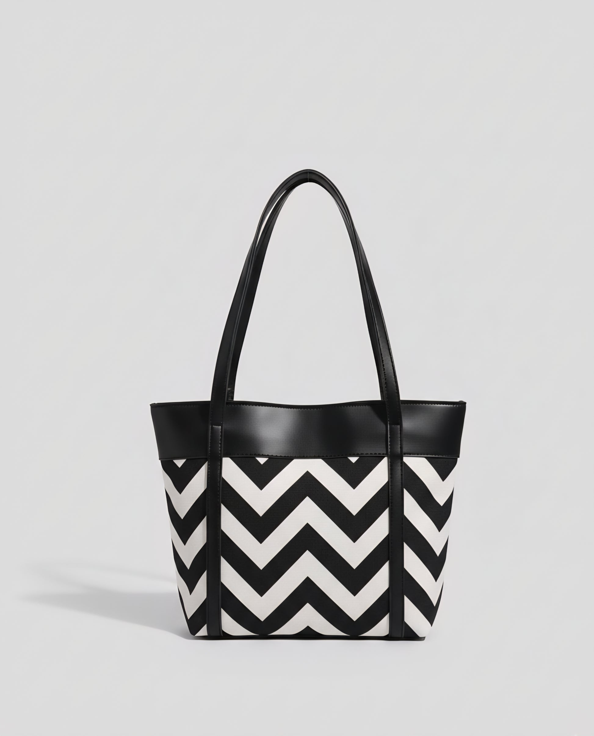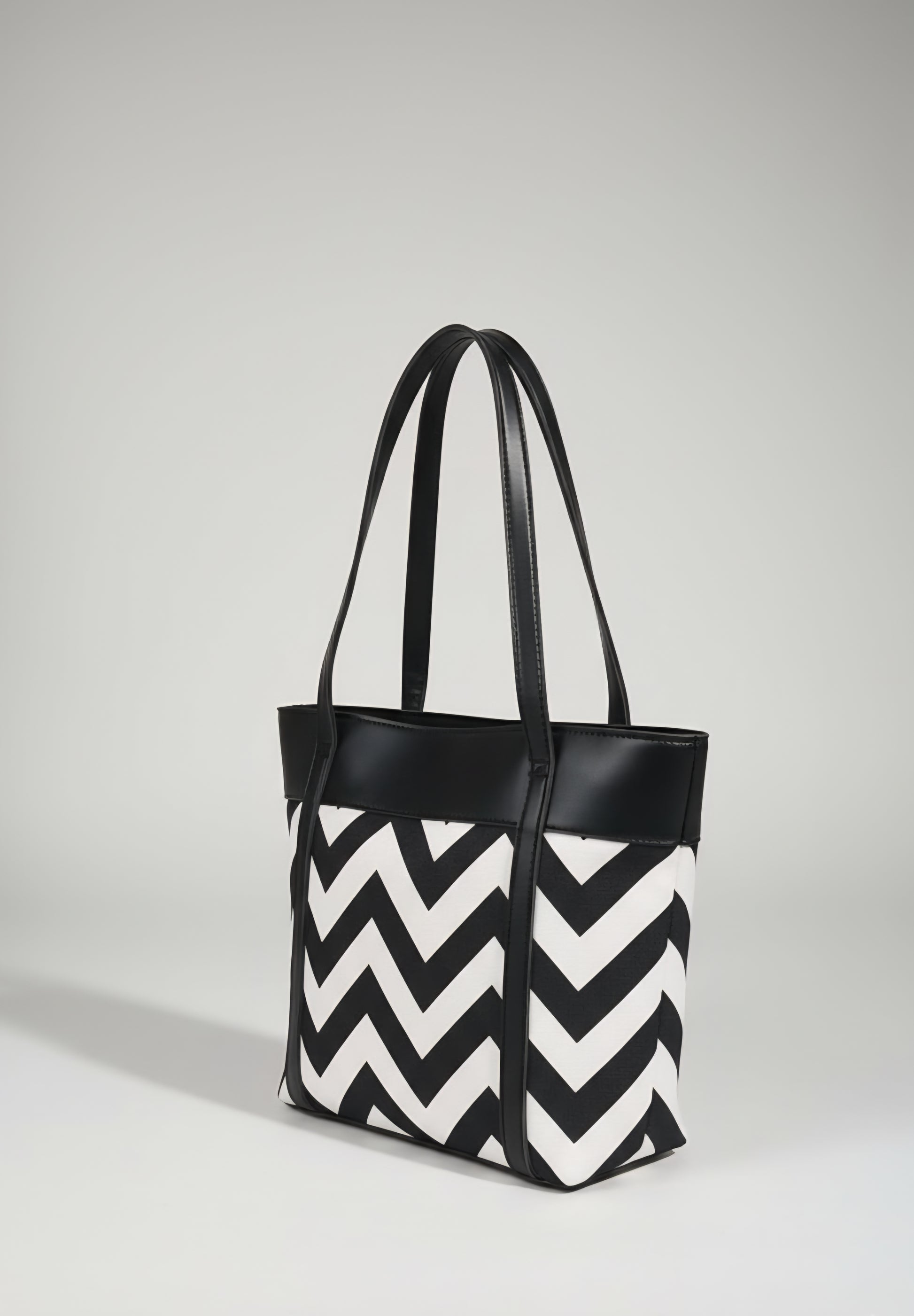 Bold, Graphic Design: Features a striking, high-contrast black and white zigzag (chevron) pattern that’s always in style and adds a sophisticated pop to your ensemble.