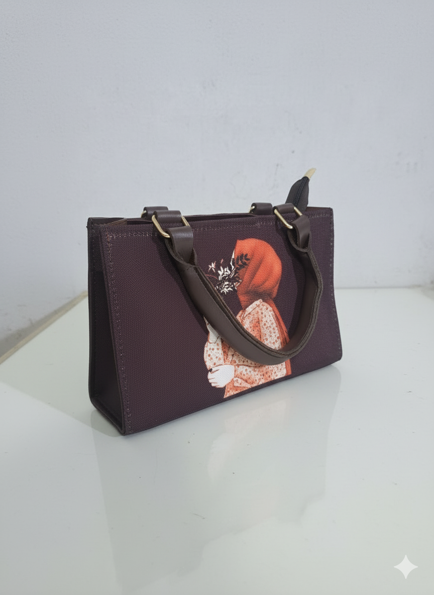 Distinctive Graphic Print: The main panel features an elegant artistic illustration of a woman in a Pink hijab holding a bouquet, adding a deeply personal and stylish cultural touch.