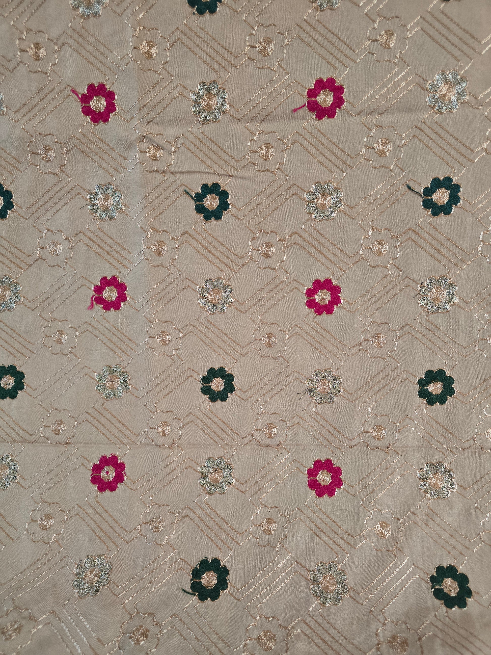 Design: Minimal embroidered motifs with elegant border detailing