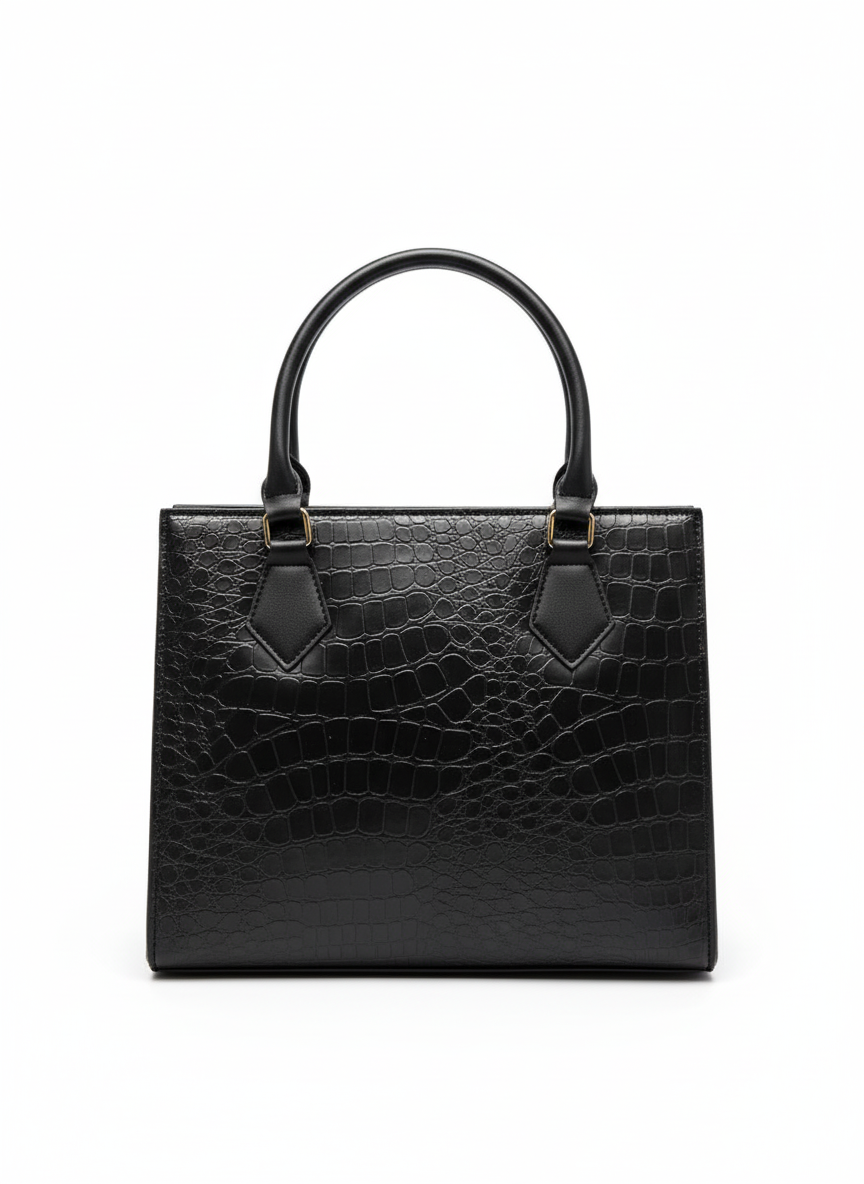 Elevate your accessory game with the Luxe Caramel Croc-Effect Satchel from Style Up. This sophisticated handbag features a rich caramel brown faux leather with an elegant embossed crocodile texture, lending a high-end, vintage appeal. Its structured, rectangular silhouette makes it a perfect choice for professional settings, while the warm color ensures year-round versatility.