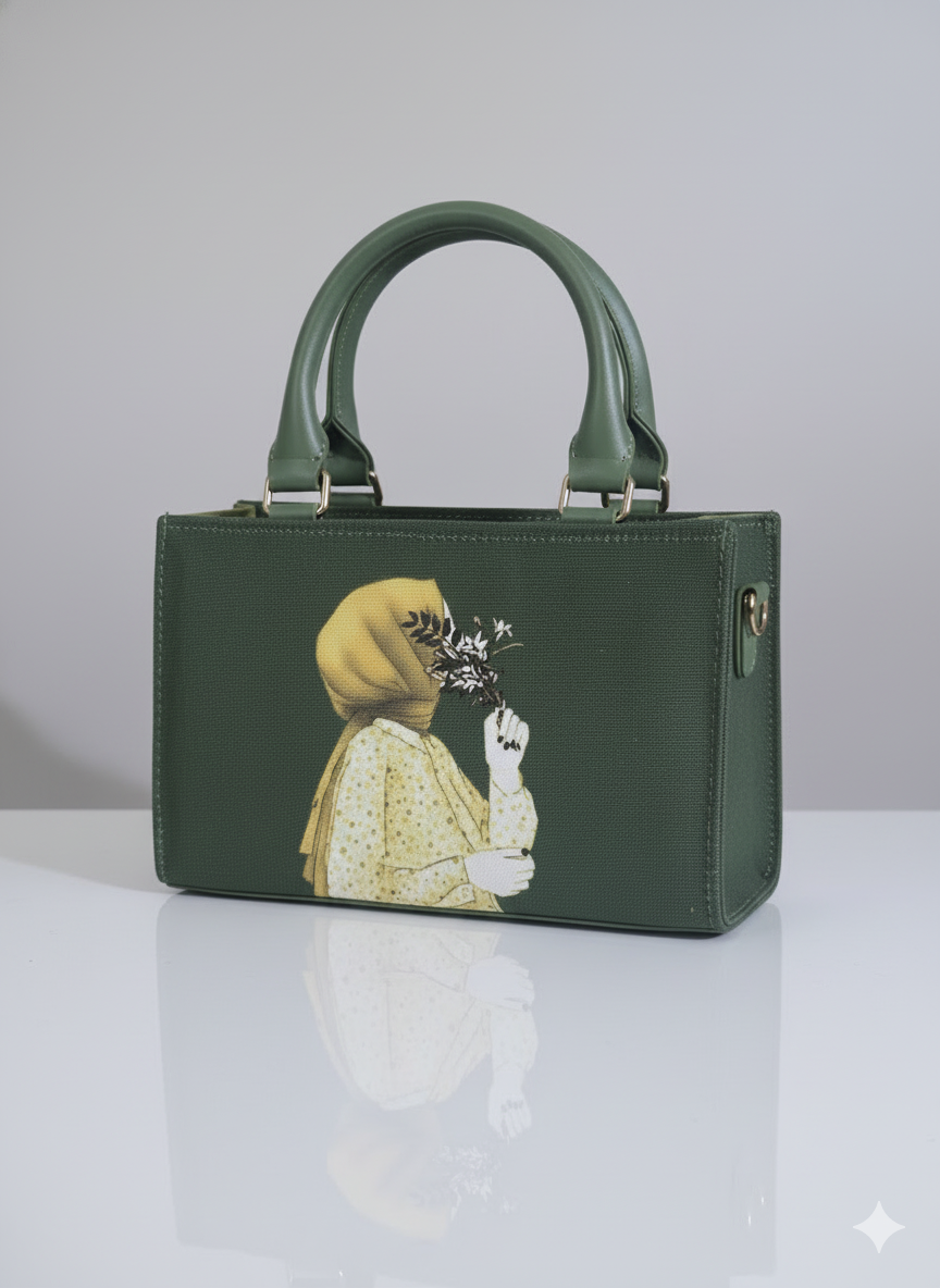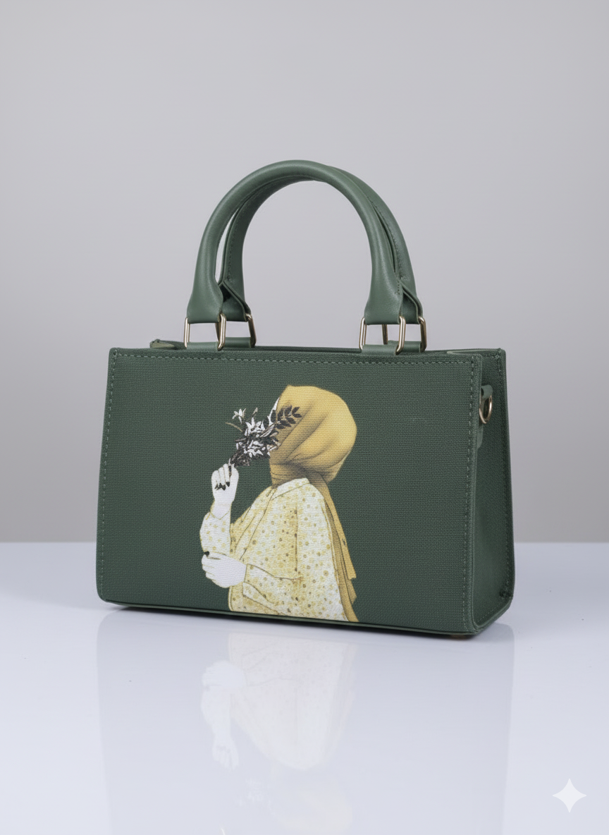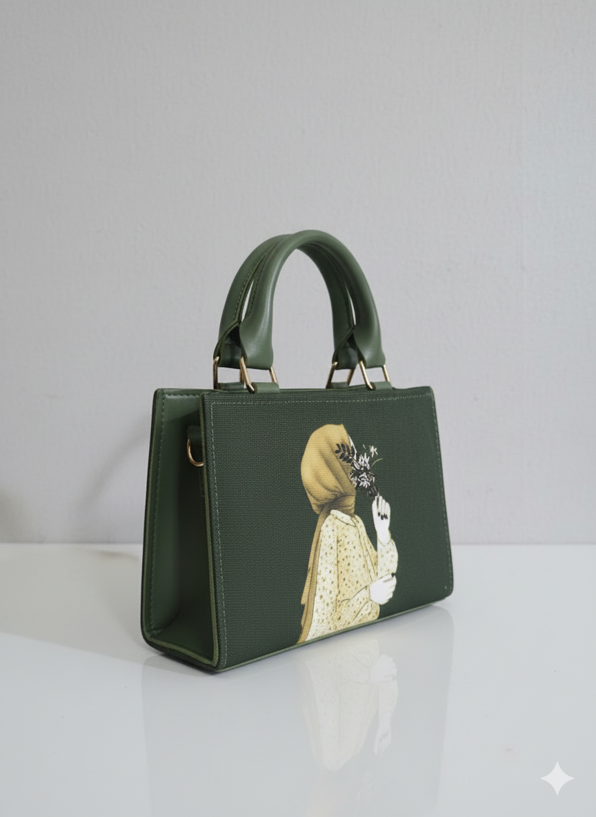 Distinctive Graphic Print: The main panel features an elegant artistic illustration of a woman in a hijab holding a bouquet, adding a deeply personal and stylish cultural touch.